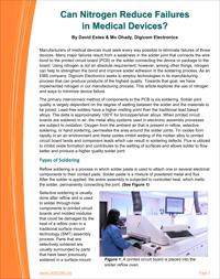 Manufacturers of medical devices must seek every way possible to eliminate failures of those devices. Many major failures result from a weakness in the solder joint that connects the wire bond to the printed circuit board (PCB) or the solder connecting the device or package to the board. Using nitrogen is not an absolute requirement; however, among other things, nitrogen can help to strengthen the bond and improve solder adhesion in the soldering process.
